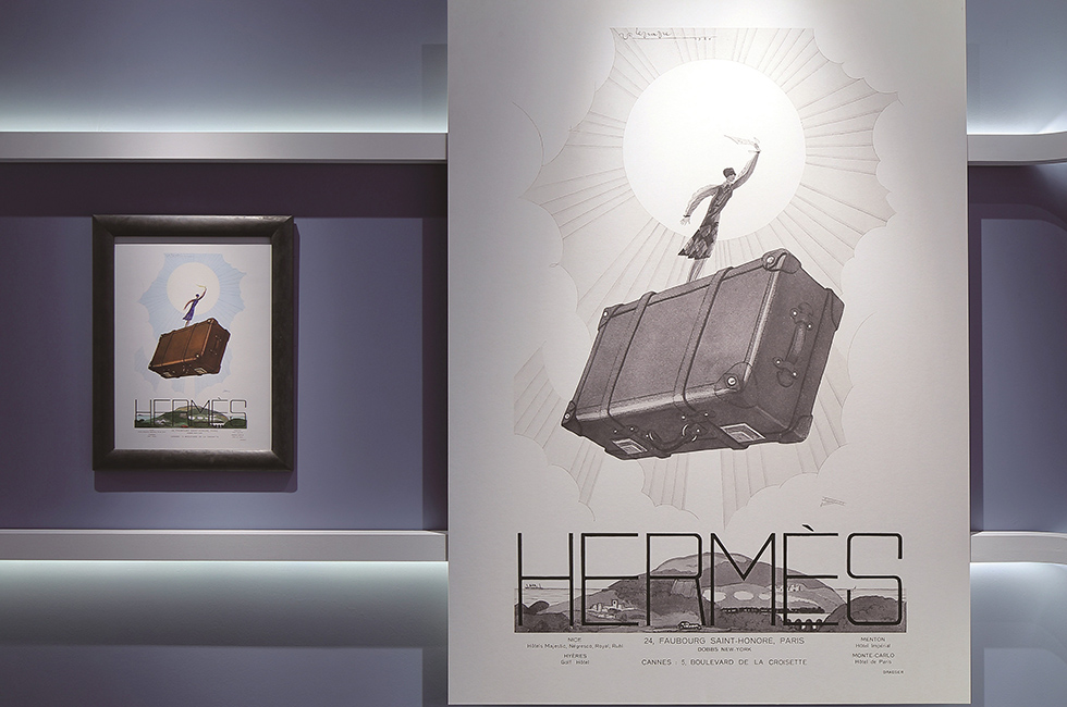 1 (왼쪽) 1995년 에르메스 테마였던 ‘길’을 위한 연하장. 1926년의 여행용 오브제 광고를 재현했다. 장 앙리 채색. (오른쪽) 여행용 오브제를 위한 광고(1926년). 조르주 르파프 일러스트레이션.