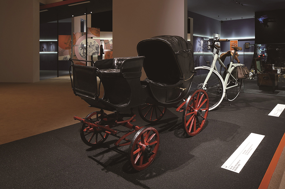 4 염소 마차(1890년경). 가죽과 래커 칠한 나무로 만들었다. 에밀 에르메스 컬렉션.
