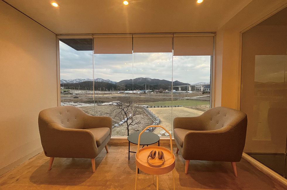 대추무파인아트의 설희경 대표는 여러 우려에도 아그네스 마틴 같은 대가의 작품을 볼 수 있는 솔올미술관이 생겼다는 점에서는 자부심이 느껴진다고 말한다. 대추무파인아트는 영국에서 파인 아트를 공부한 김래현, 그리고 서울에서 인테리어 디자인을 전공한 설희경이 공동 대표로 운영하는 강릉의 현대미술 전시 공간이다. ‘예술 나눔 리더’라는 비전으로 강릉 주민들에게 쉽게 다가갈 수 있는 현대미술 전시를 선보이는 대추무파인아트는 건물 외관이나 내부 공간은 무척 모던한데, 창밖으로 내다보이는 전망은 ‘논밭’이라는 점이 힐링 포인트다(게다가 바로 옆에는 유형문화재로 지정된 고택 ‘임경당’이 자리한다). 다양한 작가를 발굴하고 네트워크를 형성하고자 젊은 작가 공모전인 ‘대추무 오픈콜’도 진행하는데, 필자가 방문했을 당시에는 지난해 ‘내일의 작가상’에 선정된 작가 고사리의 작업을 볼 수 있었다. 1층에서 마주친, 짧은 연극 무대 같은 고사리 작가의 작품은 대추무파인아트의 정체성을 보여주는 듯했다. 공간에 길게 드리운 얇고 긴 비닐을 헤치고 작품 안으로 들어서면 사방에서 비닐이 사그락대며 부딪히는 소리가 아름답게 울리지만, 계속 비닐이 시야를 가려 어딘가에 갇힌 듯한 기분이 드는 몽환적인 공감각적 작업이다. 2024 ‘대추무 오픈콜’도 3월 말부터 시작할 예정이다. “현재는 고향인 강원도를 떠났다가 돌아온 작가, 강원도에서 나고 자란 작가, 강원도로 이주한 작가 등이 바다, 바람, 눈 등 강원도에서만 할 수 있는 이야기를 하는 전시를 준비하고 있습니다.” 무심하게 다뤄졌던 오래된 공간이 예술 공간으로 조금씩 바뀌는 사례도 눈에 띈다. 좀 더 로컬리티를 담고 표현하는 예술가는 없을까에 대한 고민으로 시작한 강릉국제아트페스티벌(GIAF)은 지난해 강릉독립예술극장 신영에서 프랜시스 알리스의 작품 ‘모래 위의 선(SANDLINES)’을 상영했고, 대관령 ‘치유의 숲’을 동선으로 활용해 베를린에서 주로 활동하는 티노 세갈의 작품을 소개하기도 했다. 또 노암터널, 옥천동 웨어하우스, 동부시장 레인보우 전시장은 공간 자체를 전시한 느낌이었다는 평을 받았다.