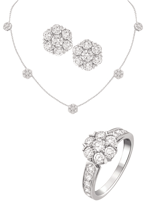 화이트 주얼리를 향한 반클리프 아펠의 취향이 고스란히 깃든 플로레뜨 컬렉션. 1920년대부터 반클리프 아펠의 피스에 등장한 플로레뜨 모티브는 시간의 한계를 뛰어넘어 저마다의 시대에 걸맞은 다양한 피스로 눈부신 존재감을 드러냈다. 7개의 라운드 다이아몬드 모티브를 새롭게 해석해 빛나는 화관으로 표현했고, 소재는 깨끗한 느낌을 전하는 화이트 골드를 선택해 컬렉션의 작품들을 우아한 무드로 완성했다. 모든 피스는 마치 꽃이 환하게 빛나는 것처럼 보이며, 입체적이고 아름다운 실루엣을 연출한다. 문의 1877-4128