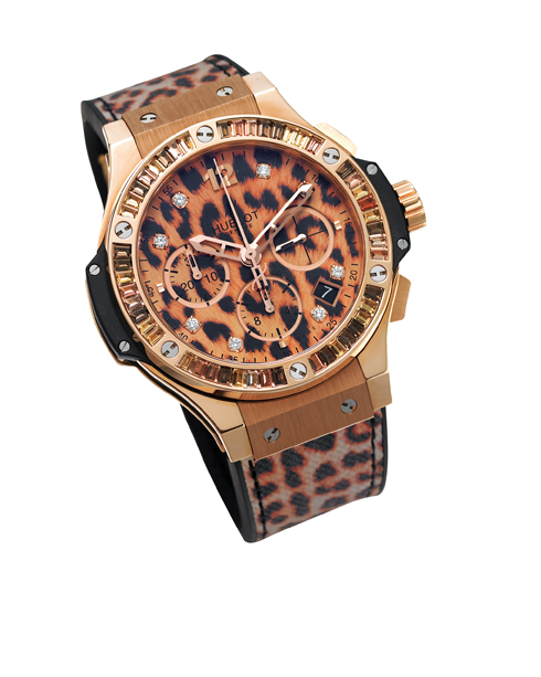 레오퍼드 패턴과 다이아몬드 장식이 화려한 빅뱅 레오퍼드 골드 워치