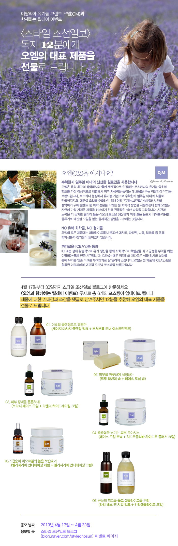 “유기농 브랜드 오엠(OM)과 함께하는 릴레이 이벤트”에 대한 1개의 생각