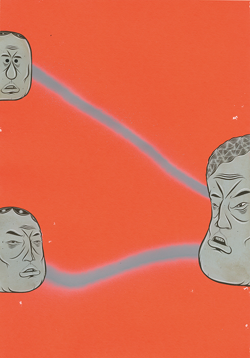 얼마 전 페로탕 삼청점에서 막을 올린 개인전을 위해 한국을 찾은 배리 맥기의 인상은 지난 7월 말 롯데시네마 월드타워에서 진행된 셰퍼드 페어리의 아티스트 토크에서 보였던 진솔하고 다정다감한 면면을 대했을 때보다 더 놀라웠다(긍정적인 의미에서 그렇다). 휴가 중에 짬을 내 들른 필자에게 그는 이렇게 자신의 전시를 (서울) 사람들이 보러 와줄 줄 몰랐다고 수줍게 말했다. 그의 진중한 태도를 접하지 않았다면 이 말만 듣고는 ‘지나친 겸손’이다 못해 ‘가식’이라고 생각할 수도 있었을지 모른다. 배리 맥기는 거리와 미술관의 경계를 허문, 흔히 ‘주류’라 일컬어지는 미술계의 양지, 그것도 뮤지엄과 갤러리 양쪽에서 꾸준히 인정과 환영을 받아온 작가여서다. 로런스 린더의 평론 글을 인용하자면, 배리 맥기는 작업관에 있어 반체제적 태도를 스스럼없이 드러내며 예술계의 표본과 기대에 순응하기를 거부해왔지만, 그럼에도 그가 화면에 담아내는 섬세한 선과 형태, 색감에는 경이로운 수준의 우아함과 표현력이 묻어 있기 때문일 것이다. 예술 오브제를 대하는 통상적인 방식을 뒤집고 ‘비주류’ 세계에서 얻은 복잡한 문화적 레퍼런스를 녹이는데도, 빼어난 미적 완성도와 창의적 기교 덕분에 ‘엘리트 시장’에서 소비되어왔다는 얘기다(작가가 의도하지 않았더라도 말이다). 필자도 꽤 오래 간직해온 물건 중 그의 트레이드마크 같은 눈이 축 늘어진 얼굴들(heads)이 새겨진 하드보드지 초대장이 있는데, 뭔가 위트 있으면서도 섬세한 표현력에 늘 매력을 느꼈지만 정작 그 작품의 창조자가 이렇듯 차분하고 수줍음 많은 캐릭터일 줄은 상상하지 못했다. 셰퍼드 페어리에게 스케이트보드와 펑크록이 있듯, 배리 맥기에게는 ‘서핑(surfing)’에 대한 무한 애정이 자리하고 있음은 명백히 보였다. 우연히 서핑 얘기를 꺼내자 그는 이미 양양에서 서핑을 하고 왔다면서 눈을 빛내며 조곤조곤 말을 이어갔다. 작은 도록에 귀여운 그래피티까지 그려주는 ‘친절한 맥기 씨’의 이번 전시는 규모가 크지는 않지만 그가 어째서 서브컬처 지지자와 컬렉터, 그리고 평단의 사랑까지 두루두루 받는지를 어느 정도는 가늠하게 해줄 수 있지 않을까 싶다.