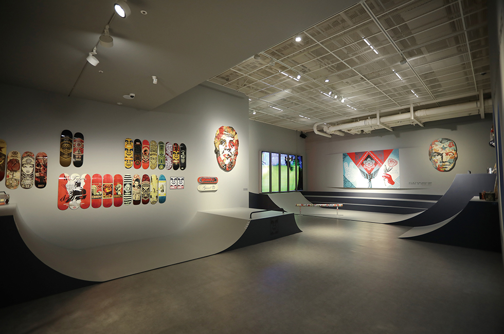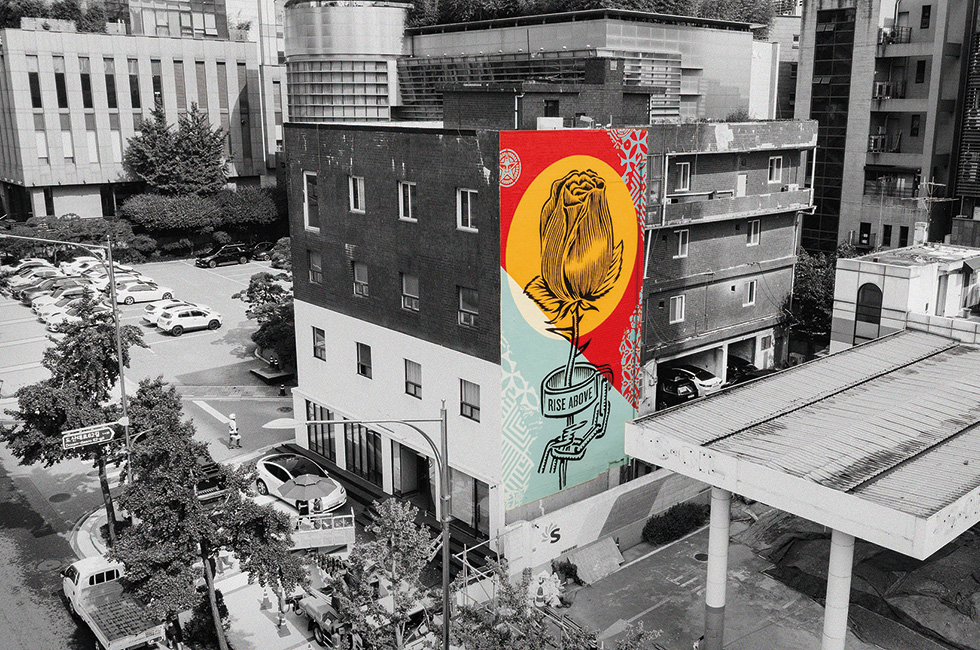그의 이름을 모르더라도 마치 지문처럼 따라다니는 몇몇 작품을 보면 “아~” 하고 고개를 끄덕이게 될 만큼 유명한 거리 예술가(street artist) 셰퍼드 페어리. 1970년생으로 1980년대 말부터 골목에 스티커를 붙이고 길거리 담벼락에 벽화를 그리면서 세상과 소통하고 권위와 관습, 부조리에 저항적인 목소리를 내기 시작한 그는 장-미셸 바스키아와 키스 해링 등을 잇는 거리 예술계의 2세대 작가로 분류될 수 있지만 정작 그 자신은 “내가 스트리트 아티스트라고 생각해본 적이 없다”고 잘라 말한다. 물론 스스로를 그저 ‘대중을 끌어당기는 아티스트(poplist)’라고 여긴다는 그의 부연 설명에 물음표를 다는 이들은 거의 없을 것이다. 한 시대를 풍미했던 거구의 프로 레슬러 앙드레의 얼굴을 담은 화제의 스티커를 만든 것을 계기로 ‘빅 브러더’를 연상시키는 ‘오베이 자이언트(Obey Giant)’ 시리즈를 자신의 상징처럼 자리매김시킨 아티스트로 나중에는 여기에서 비롯된 인기 티셔츠 브랜드 ‘오베이’를 창립하기도 했으며, 가장 유명하게는 2008년 미국 대선 후보였던 버락 오바마의 초상화 포스터 작업으로 전 세계적인 인지도를 얻은 ‘희망(Hope)’을 제작한 주인공이기도 하니 말이다. 하지만 오바마 포스터의 바탕이 된 원본 사진을 둘러싼 통신사 AP와의 엄청난 저작권 소송으로 유명세만큼이나 고통스러운 나날을 보내야 했던 이력도 있다. ‘소송의 나라’ 미국 출신인 그는 자신의 첫 주요 미술관 전시를 코앞에 두고 경찰한테 체포당하고 당뇨를 앓고 있는데도 인슐린을 빼앗기는 수모를 당하기도 했지만 꿋꿋이 자신의 길을 걸어왔다. 평화와 반전, 환경 등의 이슈에 대해 목소리를 내면서. 롯데뮤지엄에서는 일종의 문화 코드가 된 셰퍼드 페어리의 30년 넘는 예술 여정을 집약적으로 보여주는 초기작부터 영상, 사진, 벽화, 스케이트보드 등 무려 4백70여 점의 작품을 아우르는 대규모 전시를 펼치고 있다. 특히 그의 ‘오베이 자이언트’ 캠페인 초기 시리즈와 자신이 즐겨 쓰는 도상을 활용해 서울 시내 건물 다섯 곳에 걸쳐 희망과 환경 등을 주제로 한 벽화 작업을 전시하고 있어 눈길을 끈다. 석촌호수 문화실험공간 호수, 성수동 피치스 도원, 배우 정우성과 이정재가 이끄는 아티스트 컴퍼니 외벽 등이 포함돼 있다. 그의 인생 철학과 작업 세계를 더 자세히 들여다보고 싶다면 롯데뮤지엄 전시장에서 상영되는 다큐멘터리를 챙겨 볼 것을 권한다.