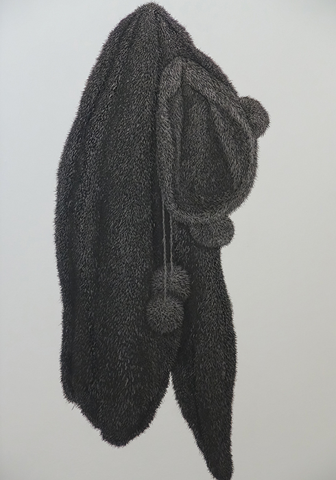 6 한홍수, ‘지젝에 따른 신체 없는 기관(OwB selon Z)’, 유화, 162Χ130cm, 2015. 생산적이고 창조적인 남근인 ‘몸’을 보여준다. 파괴적이고 공격적인 남근인 ‘미사일’을 보여준 왕두 작가와 대비된다.
