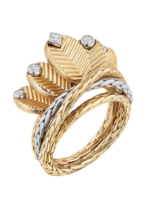 올해 새롭게 출시된 그랑 드 카페는 메종의 DNA에 현대적인 감성을 불어넣었다. 지중해의 햇살을 흠뻑 받을 수 있고, 자연환경과 컬러가 아름다워 수많은 아티스트들에게 영감의 원천이 되어온 프랑스 리비에라. 이곳의 태양을 떠올리게 하는 그랑 드 카페 컬렉션의 골드와 반짝임은 착용하는 사람을 따뜻하고 여유로운 금빛으로 물들인다. 여기에 다이아몬드와 루벨라이트 스터드를 세팅한 모델은 고급스러운 아름다움을 배가한다. 무리를 이룬 원두가 모티브 작은 움직임에도 가볍고도 경쾌하게 흔들리며, 화이트 골드에 세팅한 다이아몬드는 보면 볼수록 매력적이다.
