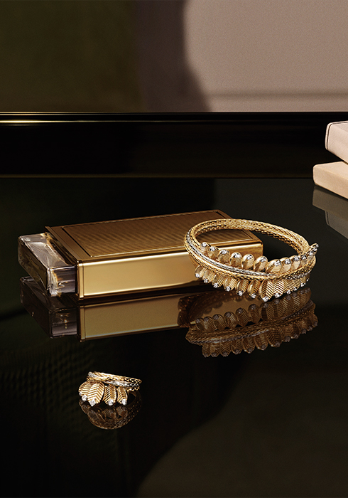 링, 펜던트 네크리스, 네크리스, 이어링, 브레이슬릿, 브로치 등으로 선보이는 그랑 드 카페 컬렉션은 감각적인 곡선미, 매혹적인 컬러, 그리고 유연하게 움직이며 끊임없이 반짝이는 무리의 아름다움이 시선을 사로잡는다. 다이아몬드 및 옵시디언 또는 루벨라이트를 세팅한 모티브가 불규칙하고 자유롭게 모이고 흩어지는데, 특히 네크리스는 피부 위에서 빛이 춤추는 듯한 반짝임이 극대화되어 매우 관능적이다. 두 부분으로 이뤄진 빈 그레인, 그리고 서로 부딪히지 않도록 조립한 섬세함이 감탄을 자아낸다. 한 부분은 곡선 형태를, 또 다른 부분은 아치 형태를 띠며, 표면을 부드럽게 처리하거나 고드롱(둥근 주름 장식)으로 변화를 줬다. 주얼리 & 워치메이킹 크리에이티브 디렉터인 마리-로르 세레드(Marie-Laure Ce´re`de)는 “그랑 드 카페는 빛, 피니싱, 볼륨감을 활용해 새로운 고귀함을 창출했습니다. 그 결과 감성 충만한 다양한 컬렉션이 탄생했는데, 메종의 창의적 자유로움을 상징하며 자연 그대로를 담고 재해석해 다양한 감각을 자극하는 디자인을 만들어냈습니다”라고 말했다.