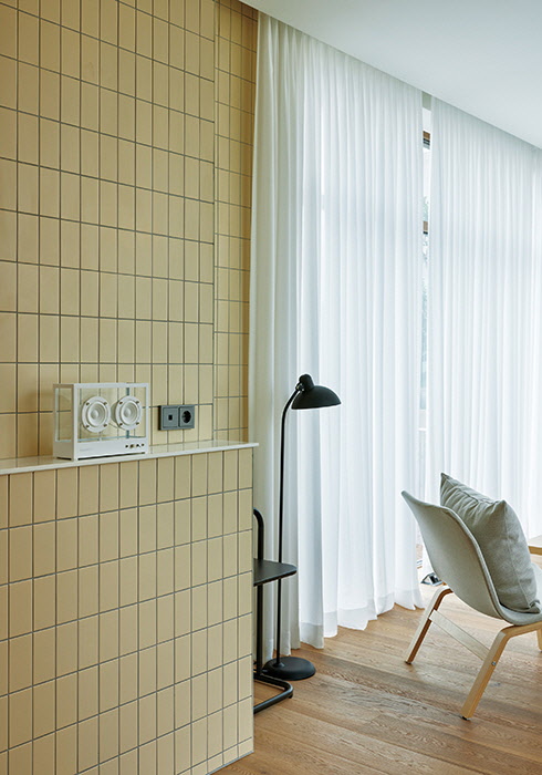 7, 8 투숙객의 공용 공간인 프라이빗 라운지. 1층엔 ‘밍글링’ 공간, 2층엔 천혜의 자연이 펼쳐진 전망을 벗 삼아 조용히 독서나 명상을 할 수 있는 공간이 각각 있다. 덴마크 명품 브랜드 프리츠 한센과의 협업으로 공간을 수놓은 가구와 조명 등이 차분하고 아늑한 분위기를 만드는 데 톡톡한 역할을 한다.
