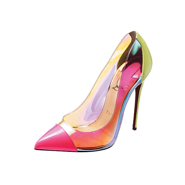 2메탈릭한 컬러의 PVC 소재와 네온 컬러가 어우러진 스틸레토 힐