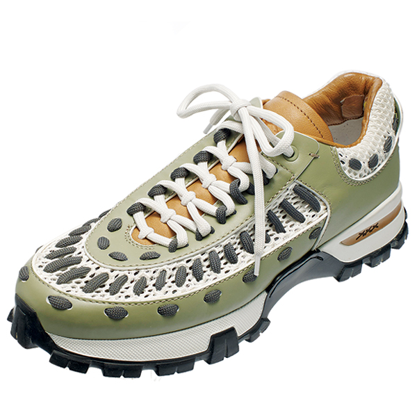 레이스업 디테일을 장식적으로 활용한 밀리터리그린 클라우디오 스니커즈