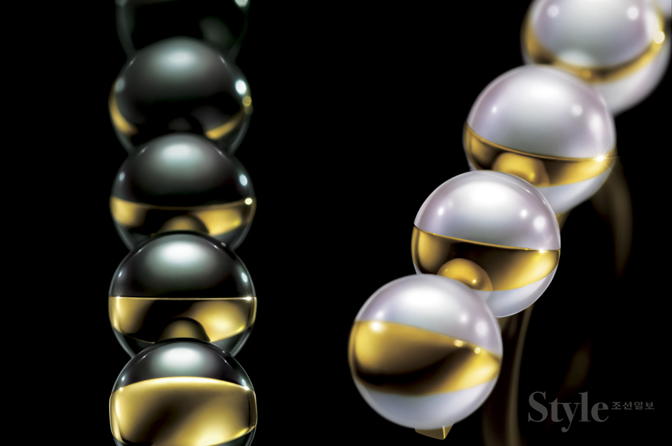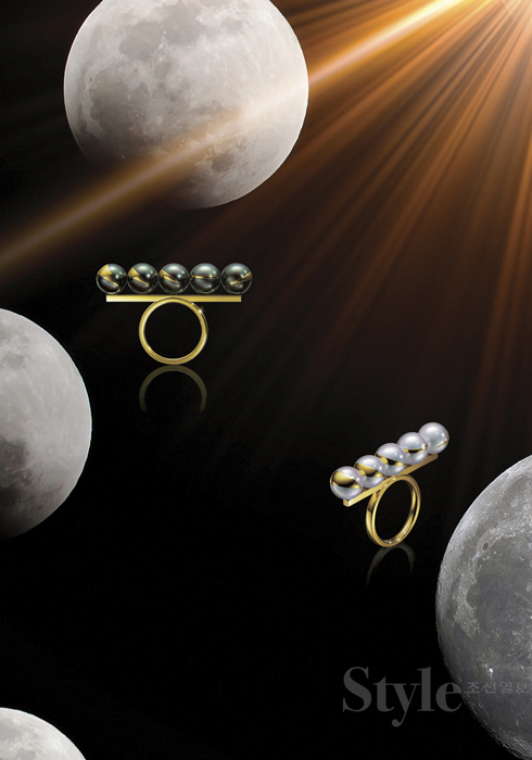 달의 일식에서 영감을 받아 상감 기법으로 골드를 진주에 세공한 발란스 하이 주얼리 컬렉션.