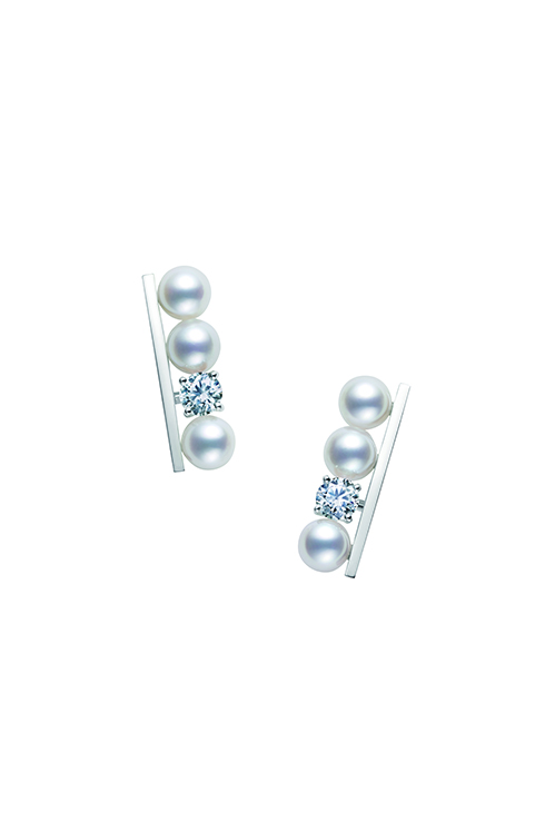 타사키를 대표하는 밸런스 시리즈의 업그레이드 버전으로, 최상급 아코야 진주와 0.6캐럿의 다이아몬드를 18K 화이트 골드 바 위에 떠 있는 것처럼 세팅한 디자인이 우아한 매력을 강조한다.