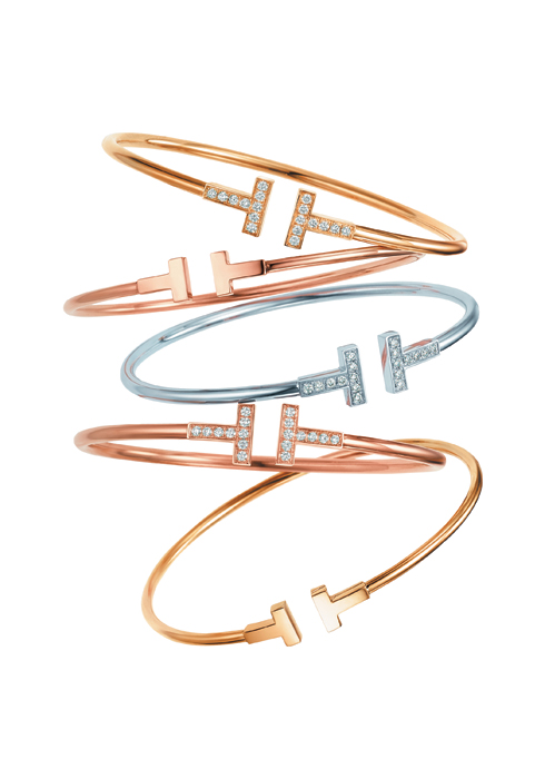 곡선과 각도를 살린 간결한 아우트라인이 돋보이는 와이어 브레이슬릿은 로즈, 옐로, 화이트 등 18K 골드 소재뿐만 아니라 T 문양을 따라 정교하게 세팅한 라운드 컷 브릴리언트 다이아몬드 제품까지 다양하게 선보인다.