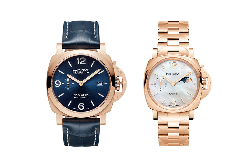 최고의 워치메이킹 기술력을 자랑하는 파네라이가 사랑하는 사람과 특별한 기념일을 만들어줄 선물로 커플 워치를 제안한다. 메종의 컬렉션에서 가장 우아한 워치 중 하나인 루미노르 두에 루나 뚜또오로와 2023 워치스 & 원더스 상하이에서 파네라이의 베스트셀러이자 아이코닉한 레퍼런스 모델로 선정된 루미노르 마리나 파네라이 골드테크™를 커플 워치로 구성해, 함께하는 시간을 더욱 의미 있게 만들어줄 것이다.