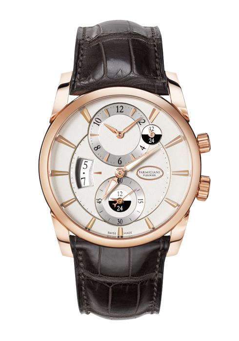스틸 또는 로즈 골드에 악어가죽과 송아지가죽을 사용했다.