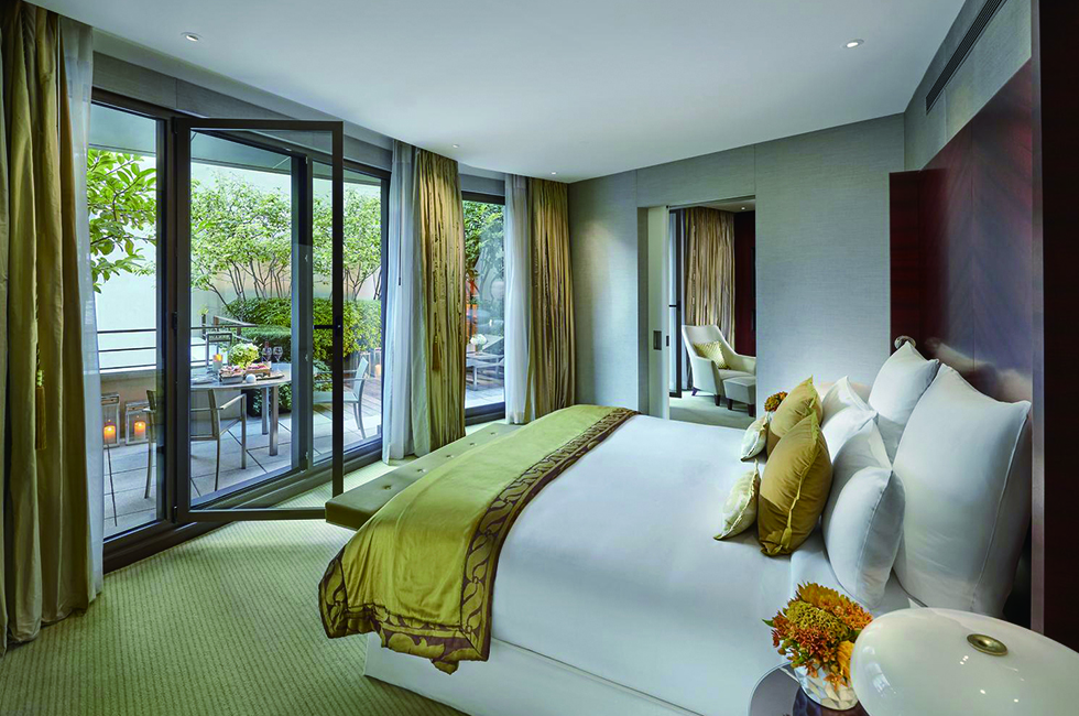 ‘그린(green)’은 비단 그랑 파리의 코드만이 아니라 글로벌 키워드다. 친환경 요소와 현대미를 동시에 품은 만다린 오리엔탈 파리(Mandarin Oriental Paris)는 1구에서도 요지인 생토노레에 자리 잡았는데, 파리의 호텔 신(scene)에 참신한 감흥을 선사했다. 영화 <보헤미안 랩소디>의 주인공 라미 말렉을 비롯해 상당수 유명 인사들이 ‘팬(fan)’을 자처하며 나서는 광고 캠페인으로도 잘 알려진 호텔 브랜드 만다린 오리엔탈(브랜드의 심벌인 ‘부채’를 모티브로 한 것이기도 하다). 이 그룹의 첫 프랑스 진출작인 만다린 오리엔탈 파리는 이 도시에서 열 곳 남짓한 ‘팰리스(palace)’급으로 분류되는 슈퍼 럭셔리 호텔이면서도 고색창연한 특급 호텔과 달리 세련된 디자인의 부티크 감성을 품고 있다. 팰리스는 5성급 호텔 중에서도 남다른 개성과 빼어난 서비스, 프랑스 문화를 반영하는 ‘삶의 예술’ 미학을 갖춘 특별한 호텔에 주어지는 최고 등급. 앞서 운을 뗐듯 ‘그린 감성’은 웬만한 명소를 걸어서 갈 수 있는, 도심에서도 최적의 위치에 자리한 이 호텔의 장점이다. 튀일리 정원을 지척에 두고 있지만, 호텔 내에도 소담스러운 정원을 감상할 수 있는 바와 레스토랑, 녹음이 느껴지는 테라스를 둔 일부 객실, 루프톱 가든에서 공수하는 신선한 채소를 재료로 삼은 스타 셰프 티에리 막스(Thierry Marx)의 건강한 미식 세계 등 곳곳에서 ‘에코 프렌들리’ 감성이 묻어난다. 실제로 프랑스 최초로 최고 친환경 등급인 HQE를 획득한 호텔이기도 하다. 그랑 팔레나 에펠 타워 등의 랜드마크가 시야에 들어오는 테라스를 거느린 럭셔리 스위트로도 명성 높은 만다린 오리엔탈 파리는 최근 아주 특별한 새 공간을 선보여 화제를 모으고 있다. 파리에 위치한 어느 객실보다 넓은 약 429㎡(1백30여 평) 규모를 뽐내는 ‘파리지앵 아파트 스위트’가 그 주인공이다. 세계적인 스타 듀오로 각광받는 기 & 부아지에(Gilles & Boissier)가 디자인을 맡았는데, 호텔 6층 공간에 4개의 침실과 욕실, 리셉션, 다이닝 룸을 두고 있다. 무엇보다 프랑스 정원에서 영감을 받았다는 약 231㎡(70여 평)의 눈부신 테라스가 백미다.