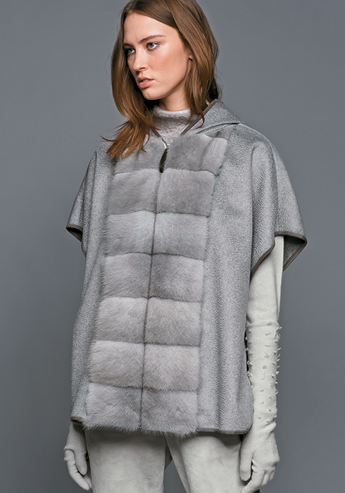 2016 F/W 시즌을 맞아 새롭게 출시한 캐시미어 케이프는 몸을 타고 부드럽게 흐르는 고급스러운 캐시미어가 여성스러운 실루엣을 완성해주며, 중앙에 가미한 퍼 장식이 포근하면서도 럭셔리한 느낌을 배가한다.