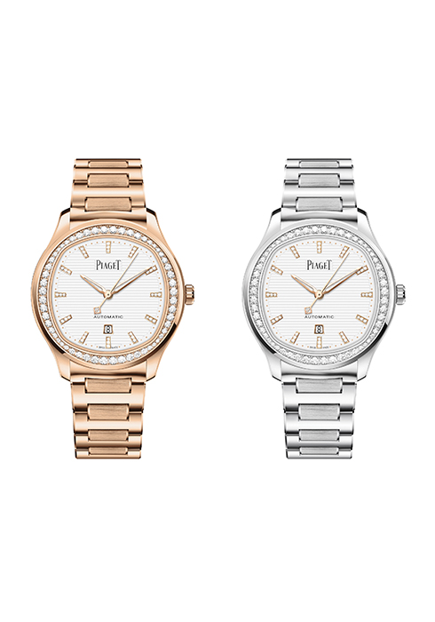 피아제에서 심플한 룩에 이질감 없이 잘 어우러지는 것은 물론, 세련된 분위기와 우아함을 한 스푼 얹어주는 심플한 디자인의 피아제 폴로 데이트 워치를 선보인다. 골드와 스틸 버전을 포함한 총 여섯 가지로 출시되며, 모던한 케이스 디자인에 파베 세팅 다이아몬드를 더해 우아한 분위기를 선사한다. 경쾌하고 세련된 디자인으로 손목 위 훌륭한 액세서리이자 워치가 되어줄 것이다. 골드 버전 6천4백만원대, 스틸 버전 2천5백만원대. 문의 02-3479-1802