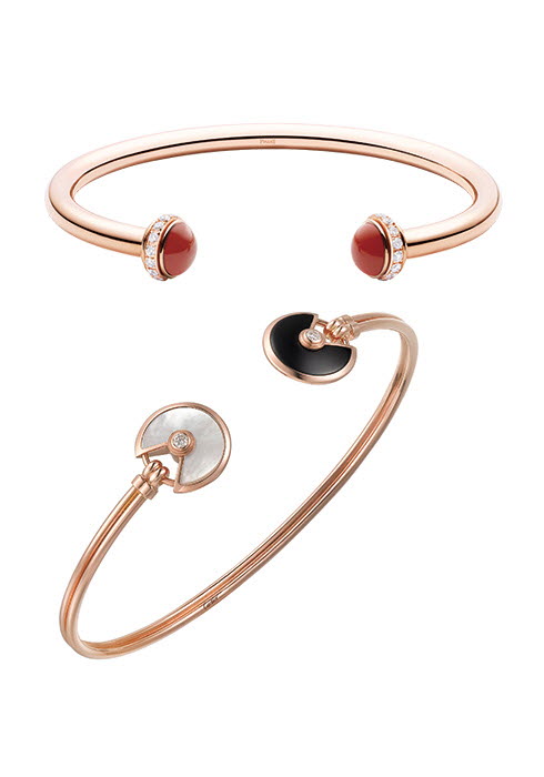 롱 펜던트에 장식한 원형의 레드 카닐리언 중심부에는 피아제의 상징인 포제션을 세팅했으며, 골드 컬러와 다이아몬드로 제작한 뱅글의 양 끝은 레드 컬러의 원형 카닐리언으로 장식했다.