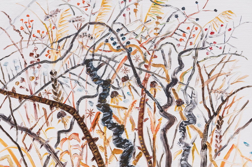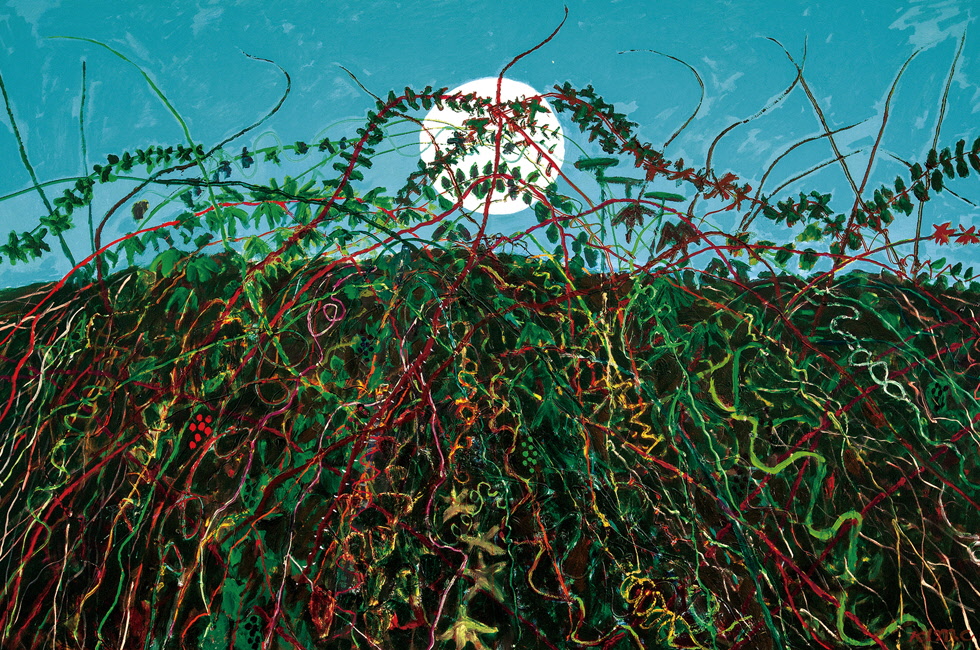 이러한 꽃 작업 때문에 한국에서 ‘산의 화가’, ‘바다의 화가’ 등으로 불리는 작가가 유럽에서는 ‘꽃의 화가’로 인식되고 있다. 하지만 빽빽한 꽃 뒤에는 설악산이, 강릉 바다가, 한국의 하늘과 정서가 펼쳐진다. 꽃이 너무 진짜 같아 실제로 벌이나 나비가 날아들 정도는 아니다. 노자가 말한 ‘대교약졸(大巧若拙)’처럼 큰 솜씨지만 오히려 다소 서툴게 보이는 면이 있다. 바로 여기에서 서구의 ‘키치’와 동양의 ‘서투름’, 좀 더 정확히는 ‘능숙함을 넘어 저절로 서툰 맛’과의 차이가 드러나지 않나 싶다. 화면 전체에 균일하게 페인팅하는 올오버(all-over) 회화 작품에서 쉽게 느낄 수 있는 답답함과 숨 막힘이 이런 ‘서투름의 미학’ 덕분에 한층 여유롭고 자연스러워진다. 이 매력을 알아보는 팬층은 이제 국적을 가리지 않는다. 지난해 파리 기메 국립 동양 박물관의 개인전 이래 아트바젤 홍콩, 페로탱 갤러리(파리, 베이징) 등으로 이어지는 최근 세계 무대에서의 분주한 활약은 그 방증이다.