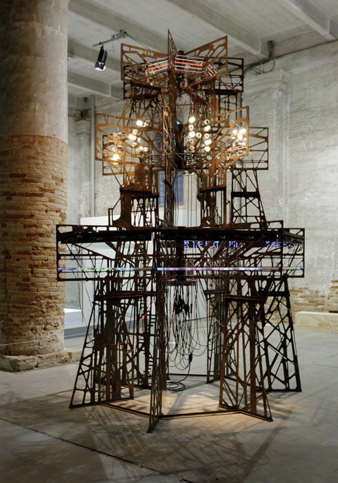 최근 조명받거나 재조명받는 세 작가와 달리 이불은 이미 1990년대부터 국제적으로 인정을 받았다. 1997년에 열린 뉴욕 현대미술관(MoMA) 개인전에서 소수 약자의 고통을 생선의 악취로 재현하면서 세계인의 이목을 끈 이불은 이듬해 휴고 보스상 최종 후보에 올랐다. 또 1999년 제48회 베니스 비엔날레에서 한국관 대표 작가를 맡은 동시에 전설적 큐레이터이자 평론가 하랄트 제만(Harald Szeemann)이 총감독을 맡은 본 전시에 초대되어 특별상을 수상했다. 이를 계기로 세계 미술계에서 자신의 위치를 공고히 한 이불은 20년 만에 베니스 비엔날레에 돌아왔다. 이불은 이번 베니스 비엔날레 본 전시에 세계 열강이 통일과 평화보다는 이권 다툼의 원격 각축장으로 삼아 그 수명이 연장되고 있는 비무장지대(DMZ) 감시초소 철거 과정에서 나온 해체물로 ‘오바드 V’(Aubade V, 400×300cm)를 만들었다. 철조망을 비롯한 해체물 600kg을 녹여 만든 이 작업은 4m 높이의 3층 철탑에 층마다 달린 날개, 빛을 발하는 전구, 모스부호, LED 표지판 등으로 구성돼 있다. 이불의 작업은 근대의 실패한 이상주의, 어원 그대로 존재하지 않는 유토피아, 실현될 수 없는 이데올로기, 오랜 망상이던 백색 신화, 근대 서사, 이미 해체된 거대 담론을 읊는다.