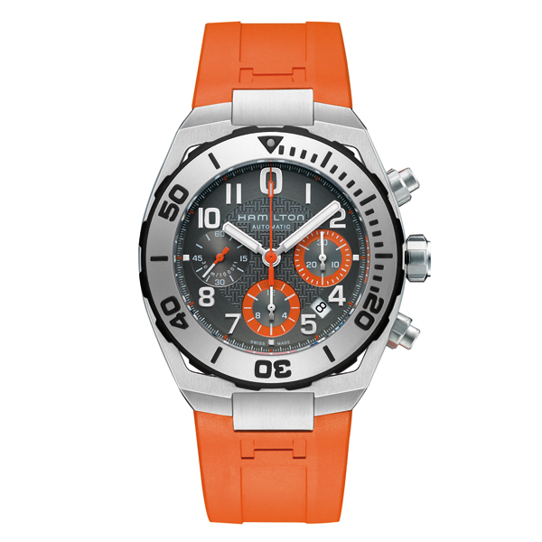 오렌지 컬러 러버 스트랩의 네이비 SUB 오토 크로노 워치