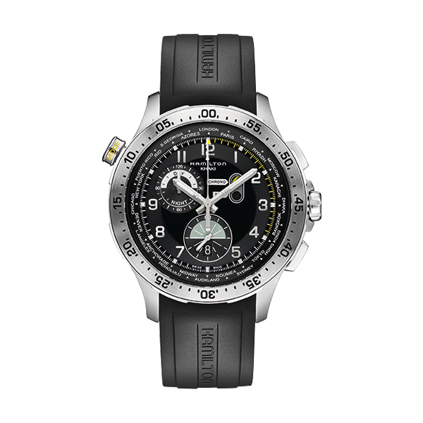 10시 방향의 푸셔를 통해 크로노그래프 기능과 월드타이머 기능을 전환할 수 있다. 직경 45mm의 스테인리스 스틸 케이스에 러버 소재 스트랩을 장착한 크로노 월드타이머 쿼츠 워치