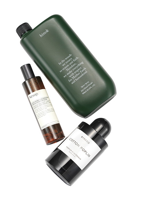 이솝 올루스 아로마틱 룸 스프레이 지중해 속으로 사라진 도시 올루스에서 영감을 받아 싱그러운 그린과 시트러스 아로마 향을 전하는 룸 스프레이. 100ml 6만3천원. 문의 1800-1987