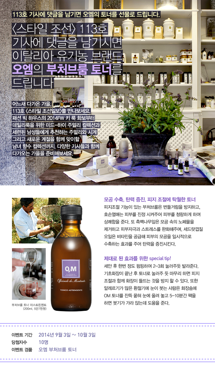 117호 기사에 댓글을 남기면 오엠의 베스트 셀러 토너와 클렌징 밀크를 선물로 드립니다.