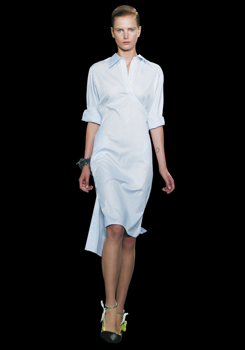 햇빛에 말려 바삭해진 깨끗한 셔츠를 입는 기분은 상상만으로도 산뜻하다. 이번 시즌 키 아이템으로 선보인 셔츠 드레스의 첫인상은 이처럼 막 세탁한 셔츠를 입은 듯 클린하고 담백하다. 남자 친구의 셔츠를 걸쳐 입은 것처럼 매니시한 느낌보단 몸의 곡선을 드러내는 여성스러운 실루엣이 강세. 특히 디올의 우아한 비대칭 커팅의 셔츠 드레스는 당장 사 입고 싶을 만큼 매혹적이다.