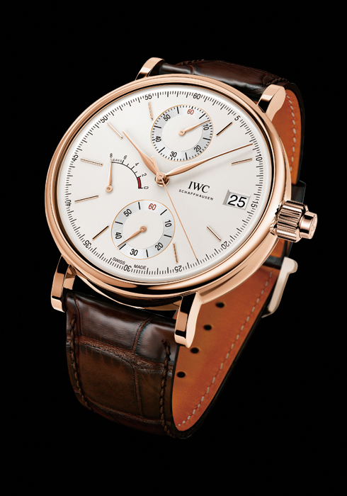 기계식 시계의 가장 대중적이면서도 정교한 매력을 담고 있는 크로노그래프 워치를 하나의 크라운으로 조작할 수 있는 IWC 최초의 모노푸셔 워치. 크로노그래프의 스타트와 스톱, 리셋 기능을 하나의 멀티 기능 푸셔로 조작할 수 있는 자체 제작 무브먼트 칼리버 59630을 탑재해 완성도를 높였다. 크로노그래프, 파워 리저브 창, 시간과 분을 표시하고 날짜 창까지 담았지만 간결하고 클래식하게 레이아웃한 다이얼 디자인은 브랜드 고유의 매력을 잘 담고 있다. 이탈리아의 유명한 구두 매뉴팩처인 산토니와 협업해 선보이는 레더 스트랩도 품격을 더한다. 화이트 골드와 레드 골드 버전 두 가지로 출시되었다.