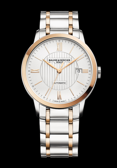 매력적인 가격에 품질 좋은 시계를 선보이는 보메 메르시에의 ‘클래시마 오토매틱 투톤’. 아시아인들이 가장 선호하는 골드와 실버의 콤비 워치에 골드 로마숫자와 인덱스, 스위스 오토매틱 무브먼트까지 더해 대중적이면서도 클래식한 시계를 완성했다. 기요셰 데코 실버 다이얼에 골드 핸즈는 오래도록 착용할 수 있는 워치 디자인의 고전이라 할 수 있다. 뒷면에 보메 메르시에의 로고이자 균형미의 상징인 그리스 문자 ‘파이(phi)’가 각인되어 있다. 사회 초년생과 웨딩 커플 워치에 집중하는 보메 메르시에의 얼굴이라 할 수 있는 워치 컬렉션이다.