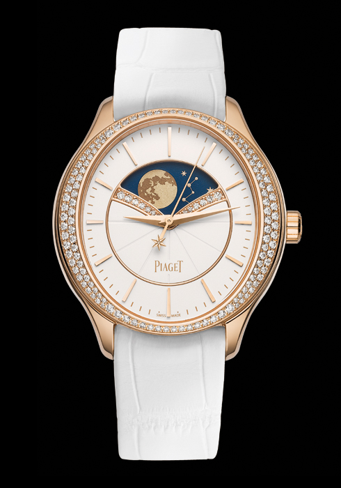 서정성을 고스란히 담은 매력적인 피아제의 새로운 라임라이트 컬렉션 스텔라 워치. 최근 가장 각광받는 고전적인 기계식 시계의 기능인 문페이즈를 시계 중심부에 데커레이션해 풍부한 감성과 브랜드 고유의 완성도를 모두 담았다. 실용적인 36mm 사이즈의 케이스에 핑크 골드 시침, 14개의 다이아몬드를 세팅한 문페이즈, 1백26개의 브릴리언트 컷 다이아몬드를 세팅했다. 하이 주얼리를 함께 선보이는 브랜드인 만큼 다이얼의 구성과 디자인이 뛰어나다. 그뿐 아니라 피아제의 자체 제작 584P 셀프 와인딩 기계식 라지문 페이스 인디케이터 무브먼트의 정확성으로 기계식 시계의 매력까지 함께 만끽할 수 있다.