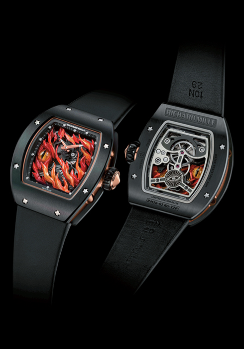 아랍과 프랑스, 인도 등 다양한 문화권에서 고통과 불행의 상징으로 통용되는 이블 아이(evil eye)를 모티브로 하이엔드 워치를 선보이는 리차드 밀. 워낙 독특하고 새로운 개념의 워치로 유명한 브랜드이기에 소재 선택부터 남다르다. 악마의 눈을 표현한 이 워치는 제네바의 유명한 시계 장인 올리비에 보셰가 그랑 푀 에나멜 기법으로 완성한 예술품으로, 불길한 기운을 더 강렬한 부적으로 막아낸다는 의미를 지녔다. 고온에서 여러 번 구워내기를 반복하는 클래식한 그랑 푀 기법을 현대적인 디자인에 도입했다. 이에 더해 50시간의 파워 리저브 기능을 갖춘 매뉴얼 와인딩 무브먼트 뚜르비용 TM26-02와 블랙 TZP 세라믹 소재 케이스를 더해 오직 리차드 밀만의 독보적인 컬렉션으로 완성했다.