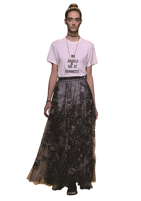 백 마디 말보다 강한 것이 여기에 있다. 패션계를 점령한, 강렬한 메시지를 담은 슬로건 티셔츠가 바로 그것이다. 수년 전부터 정치적인 메시지나 동물 보호, 여성 인권 신장, 테러 반대 등의 메시지를 담은 패션 아이템이 등장하곤 했는데, 올해는 그 여세가 돌풍을 일으키듯 뉴욕부터 밀라노, 런던, 파리까지 4대 도시 전반에 걸쳐 디자이너들이 전하고자 하는 메시지를 티셔츠에 고스란히 담았다. 대표적으로 디올의 최초 여성 크리에이티브 디렉터인 마리아 그라치아 치우리는 ‘We should all be feminists(우리는 모두 페미니스트여야 한다)’라는 의미심장하고도 강렬한 메시지를 담은 티셔츠를 로맨틱하고 여성스러운 레이스 스커트와 매치했다. 또 적극적인 동물 애호가로 가죽과 리얼 모피는 일체 사용하지 않는 스텔라 매카트니는 이런 뚜렷한 브랜드의 가치관을 ‘No leather’, ‘No fur’ 등의 슬로건을 담은 티셔츠로 패셔너블하게 전달했다. 이 밖에도 ‘Fashion is a passion’을 적은 사카이의 티셔츠, ‘Be your own hero’, ‘Silent soldier’라는 메시지를 담은 하이더 아크만 티셔츠까지, 다양한 메시지와 슬로건을 담은 디자이너 브랜드들이 조용하지만 강력하게 자신들의 목소리를 들려주고 있다. 가볍지만 그 의미는 무거운 한 장의 티셔츠가 전하는 개념 있는 행보에 당신도 동참해보길.