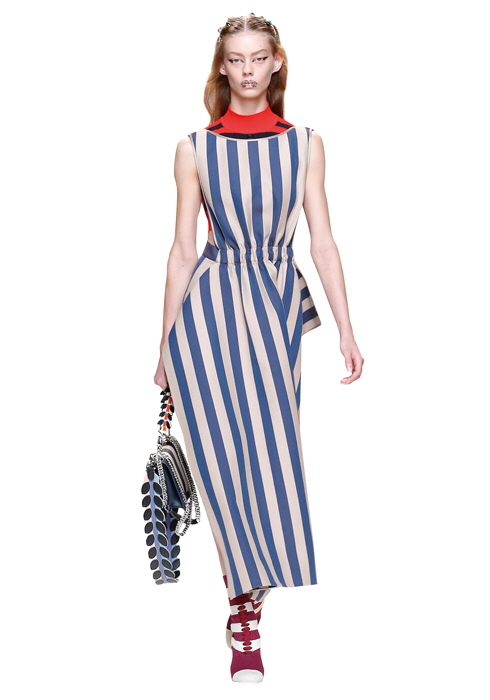 여름이면 등장하는 머린 룩 때문인지 스트라이프는 플라워 패턴만큼이나 더 이상 새로운 트렌드는 아니지만, 이번 시즌은 풍기는 에너지부터 남다르다. 여전히 해변의 파라솔을 연상시키는 머린풍 스트라이프부터 모던하고 그래픽적인 스트라이프까지 다양하게 등장하는데, 생동감 있는 굵기의 변화와 비비드한 컬러의 위트 있는 배치를 통해 경쾌하면서 아티스틱한 느낌을 더한 점이 관전 포인트다. 먼저 에이프런 모티브의 드레스를 비롯해 가방, 신발 등 머리부터 발끝까지 브랜드를 상징하는 크고 작은 줄무늬로 가득 채운 펜디의 룩을 살펴보자. 설명만 들었을 땐 온통 줄무늬로 장식한 과하고 부담스러운 룩이 떠오르지만, 컬러와 스트라이프 굵기의 강약을 적절히 조절해 실제 모델 룩은 우아하고 여성미가 넘친다. 이와 더불어 강렬한 컬러를 믹스해 경쾌하면서도 스포티한 스트라이프 니트 웨어를 선보인 프로엔자슐러, 오프닝 세레모니, 소니아 리키엘도 눈여겨볼 것. 이 룩들이 서로 다른 굵기, 컬러의 스트라이프를 함께 매치한 스타일이라면, 고수를 위한 스타일링법으로 스트라이프와 도트, 페이즐리, 체크 등 다른 패턴을 믹스한 룩도 눈에 띈다. 프라다는 1970년대 레트로 느낌을 가미한 체크, 지오메트릭 패턴을 스트라이프와 매치했는데, 각기 다른 패턴을 믹스했음에도 어색하지 않고 되레 굉장히 스타일리시하다. 아직까지는 여러 개의 프린트를 믹스하는 것이 어려운 초보자라면 패턴의 컬러 톤만 맞춰도 스타일링이 쉬워진다. 각기 다른 스트라이프와 페이즐리 패턴을 믹스했지만 블랙 & 화이트로 컬러 톤을 맞춰 조화로운 룩을 완성한 에트로 컬렉션이 가장 좋은 예다.