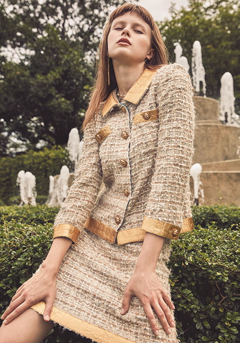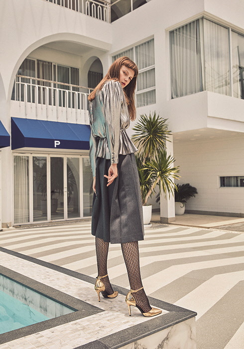 그레이 스커트 2백80만원 모두 구찌. 골드 스트랩 힐 스타일리스트 소장품.