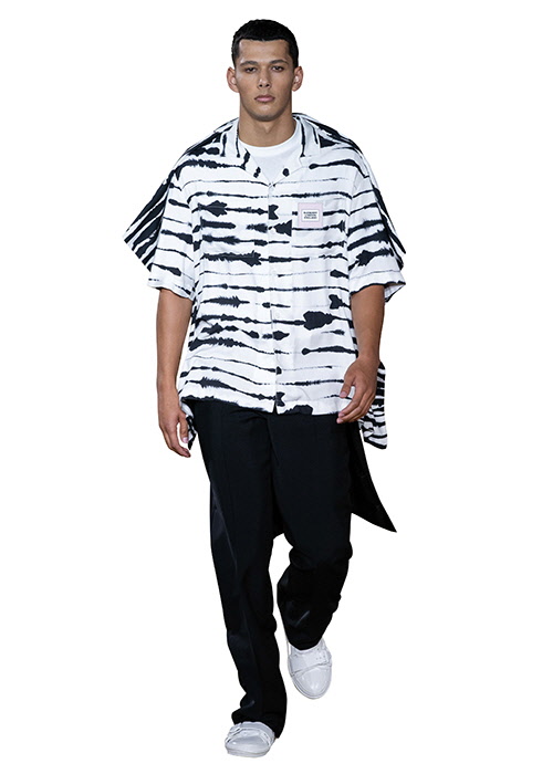 올봄 손으로 쓱 칠하고 물감을 흩뜨려 뿌린 추상적인 패턴, 홀치기 효과, 얼룩덜룩한 워싱 등이 남성 옷차림에 예술적 자유를 선사했다. 길거리에서 흔히 볼 수 있는 가벼움과는 거리가 멀다. 대충 우연의 효과를 노린 듯 자유분방한 무늬는 정교한 테일러링, 고급스러운 소재와 만나 하이패션으로 거듭났다. 디자이너들은 데님, 실크, 가죽 위에 아티스틱한 기법을 깔끔하고 세련되게 표현했는데, 카무플라주 패턴을 마치 추상화처럼 표현한 로샤스, 물감이 은은하게 번진 것 같은 수트를 선보인 에르메네질도 제냐가 대표적인 예. |