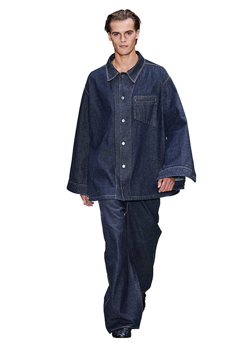 “묶고 더블로 가!” 이 유행어가 딱 맞아떨어지는 트렌드가 여기 있다. 바로 ‘청청 패션’. 밀라노와 파리의 다수 브랜드들은 자칫 무리수일 수 있는 더블 데님을 쿨하게 바꾸어놓았다. 로에베는 박시한 데님 수트를 선보였는데, 색이 살짝 바랜 워싱 데님이 산뜻함을 전한다. 셀린느는 1970년대 벨보텀 진과 워싱 데님 재킷으로 반항적인 레트로 데님 스타일링을 선보였고, 발렌티노는 클래식한 데님 재킷에 동일한 소재의 셔츠와 팬츠를 매치해 데님 셋업 스타일의 정석을 보여주었다. |