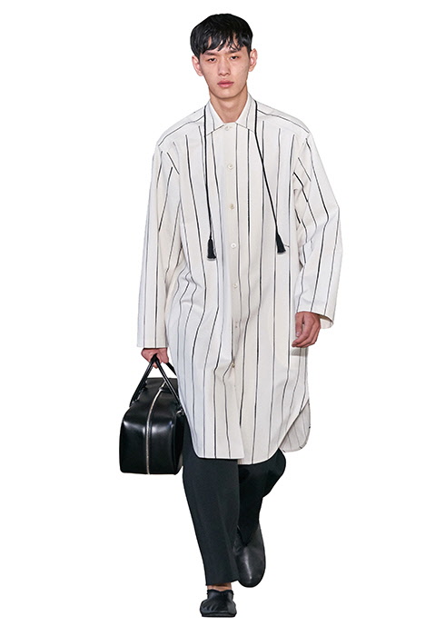셔츠가 길어졌다. 튜닉이라 해야 할까? 길고 가는 실루엣의 톱과 니트, 셔츠가 루이 비통, 펜디, 로에베, 라프 시몬스 등 트렌드를 이끌어가는 주요 브랜드의 컬렉션에 대거 등장했다. 현대 남성복 실루엣에 대한 고정관념을 뒤흔들며 성의 경계를 오가는데, 그렇다고 완전히 남성성을 잃은 것은 아니다. 생각해보라. 동양의 전통 의상들을! 로에베가 선보인 스웨이드 소재 셔츠는 터키의 카프탄을, 루이 비통의 플라워 프린트 실크 셔츠는 중국의 치파오를 연상시킨다. 이국으로 향하는 시간 여행자의 모습이 이러할지도. |