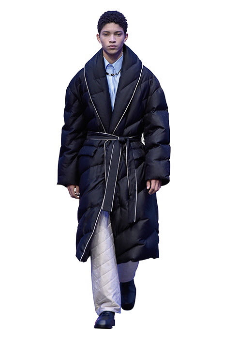 영하로 곤두박질치는 기온 속에서도 품위를 유지할 수 있는 겨울 코트 트렌드는 ‘목욕 가운’으로 요약할 수 있다. 데이 웨어에 라운드 웨어를 걸치는 식의 일요일 아침 느긋하고 여유로운 느낌을 담은 스타일에서 기분 좋은 편안함과 자유분방한 애티튜드가 강조된다. 완벽하게 짜인 테일러링을 바탕으로 롱 & 린(long & lean)의 여유로운 실루엣이 주를 이루는데, 클래식하고 우아한 버전은 루이 비통과 에르메네질도 제냐, 톰 포드 등에서 찾아볼 수 있고, 펜디에서는 애슬레저와 결합해 패딩을 적용한 다운 재킷 형태로 보다 대담한 스타일을 선보였다. 좌: Dressing Gown_FENDI / 우: Dressing Gown_LOUIS VUITTON