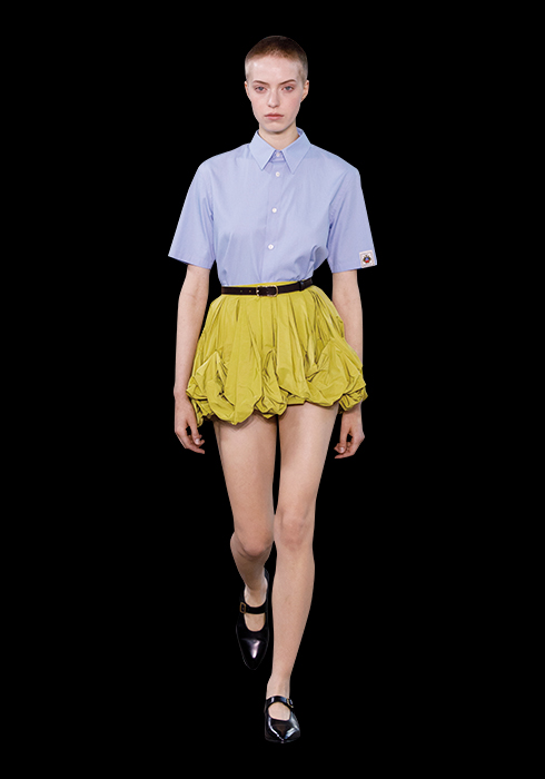 치마 길이가 한층 짧아졌다. 무릎 위로 오는 길이는 기본이거니와 속옷을 아슬아슬하게 가릴 정도로 짧은 길이까지 등장한 것. 심플하고 현대적인 무드의 구찌 레더 스커트와 니트, 그리고 볼드한 네크리스의 조화는 일상에서도 충분히 참고할 만한 스타일링이다. 반면 치마에 주름 디테일을 더해 퐁실퐁실 구름 같은 실루엣을 연출한 미우미우 스커트와 발리 룩이 이번 미니스커트에서 빠질 수 없는 키 룩이다. 디스퀘어드 컬렉션에서는 여성용 테니스 스커트에서 영감받아 화려한 진주 목걸이, 더블브레스트 재킷, 그리고 메탈 스트랩을 매치해 화려한 마이크로 스커트 룩을 완성했다.