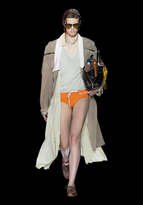 짧았다가 길어졌다가, 혹은 실종되거나, 늘 예측할 수 없는 하의 패션의 트렌드. 이번 2024 S/S 하의는 ‘울트라 하이웨이스트’다. 로에베의 쇼에서는 모델들이 허리 위로 끌어올린 팬츠의 주머니에 손을 무심하게 찔러 넣고 런웨이를걸었다. 릭 오웬스는 허리 위부터 시작해 허리를 잘록하게 잡아주고 바닥에 끌릴 정도의 롱 하이웨이스트 팬츠를 선보였고, 생 로랑은 하늘거리고 넉넉한 핏의 상의에 에지를 부여하는 하이웨이스트 플루트 팬츠를 매치한 관능적인 룩을 선보였다. 이번 시즌 쇼핑 리스트에 하이웨이스트 팬츠를 추가해 길고 긴 다리를 더 자신 있게 뽐내볼 것.