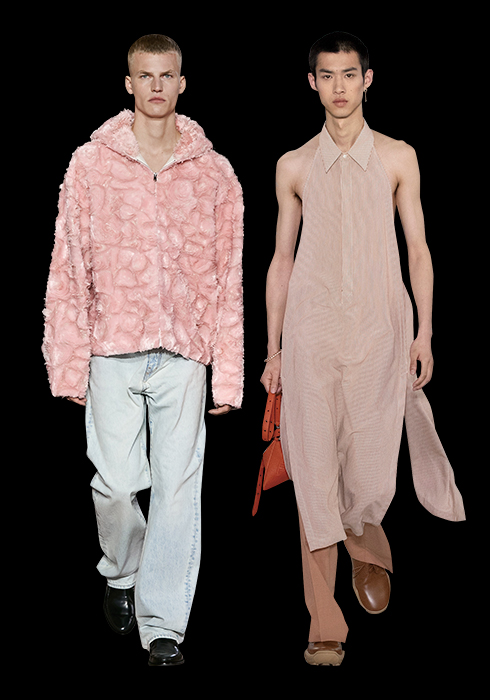 2024년 키 컬러는 핑크와 오렌지 컬러 중간 어디쯤인 듯한, 잘 익은 복숭아가 떠오르는 컬러, 피치 퍼즈. 이미 2024 S/S 맨즈 컬렉션에서 다양한 피치 퍼즈 컬러 룩이 자주 눈에 띈다. 톤 다운된 팬츠, 밝은 톤의 롱 셔츠에 브라운 슈즈와 오렌지 컬러의 백으로 마무리해 톤온톤 스타일링을 보여준 펜디, 셔츠와 코트 모두 피치 컬러를 사용한 에르메스, 수트까지 피치 퍼즈 컬러로 물들인 겐조. 민트 슈즈와 피치 퍼즈 컬러의 팬츠 조합을 보고 있으니 피치 퍼즈의 사랑스러움에 빠져들기 충분하다.