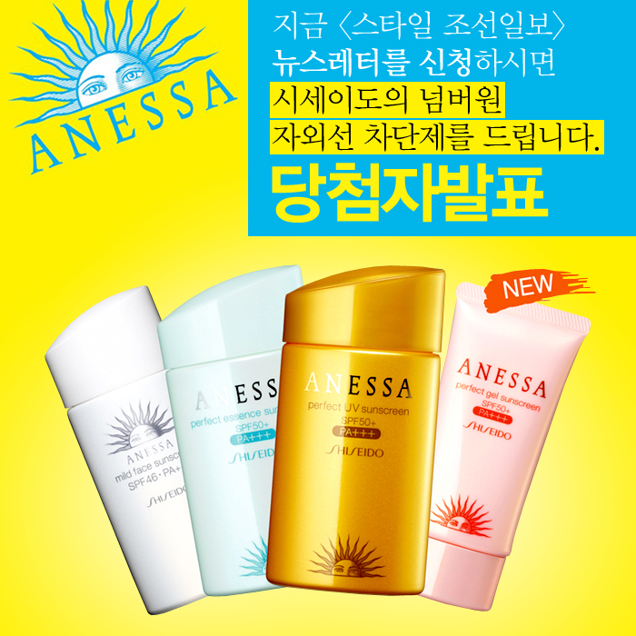 시세이도 넘버원 자외선 차단제 이벤트 발표 작성일자: 7월 05, 2013 글쓴이: stylechosun 조회수: 2414 7월 05, 2013 이벤트에 응모해 주신 분들께 진심으로 감사의 말씀을 드립니다 시세이도 넘버원 자외선 차단제 이벤트 당첨자 명단은 아래와 같습니다. parkhyojin empress sunhaepark iychoitnt chs1121 당첨되신 모든 분들 축하드립니다. 글 네비게이션 이전글뉴스레터를 신청하면 에스티 로더 메이크업 제품을 선물로 드립니다 다음글그리스에서 온 자연주의 화장품 코레스와 함께 피부 정화하기 이벤트
