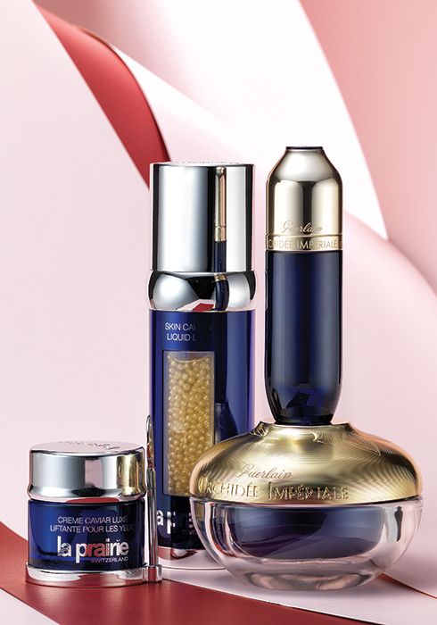 골드 오키드 임페리얼 아이 세럼 15ml 31만원대, 골드 오키드 임페리얼 크림 50ml 59만원대 모두 겔랑. 문의 080-343-9500