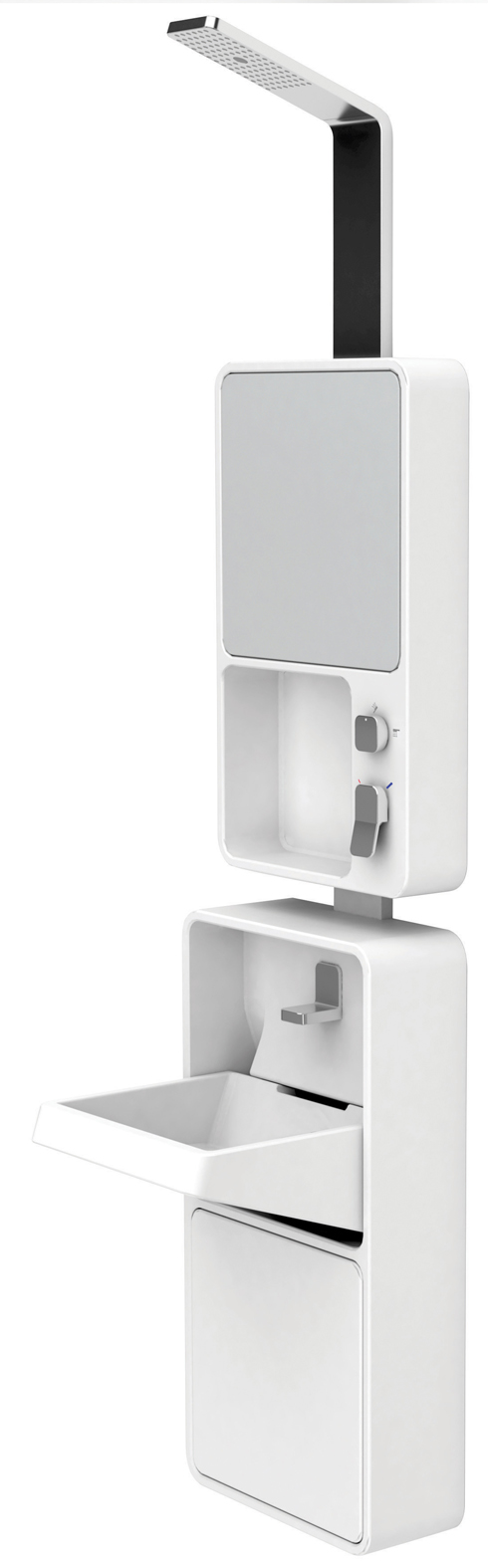 시스템 샤워기 분야에서 꾸준한 명성을 구축해온 세비앙은 스튜디오나 소형 주택을 위한 욕실 공간의 효율성을 겨냥한 ‘젠(Zen)’과 ‘올인(Allin)’으로 100% 디자인런던을 찾았다. 젠은 액상 비누나 샴푸를 담는 용기를 포함한 샤워기로, 간단한 수납공간을 겸하는 실용성을 갖췄으며, 올인은 수납장, 세면대, 샤워 시스템을 모두 하나로 묶었다. 샤워를 할 땐 세면대를 접어 공간을 보다 넓게 사용할 수 있고 수납장도 세분화해 사용 빈도에 따라 정리할 수 있다.