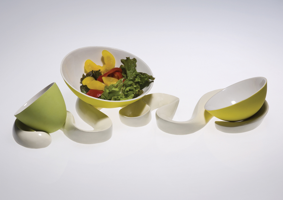 아이클루디자인의 ‘나눔다기(茶器, Sharing Teapot)’는 한 번에 두 종류의 차를 우려낼 수 있는 다기다. 실용적일 뿐 아니라 찻잎에 따라 달라지는 색상으로 시각적인 즐거움을 선사하고 배려와 공유의 문화를 바탕으로 새로운 경험과 가치를 부여할 수 있다. 이 회사는 나뭇가지에 젖병을 걸어 말릴 수 있을 뿐만 아니라 과일 쟁반이나 생활 소품을 걸어놓을 수 있는 ‘호비트리’라는 아이디어 제품도 함께 선보였다. 디자인나우(Design Now)의 물결치는 샐러드볼은 3백60도 각도로 그릇이 움직임으로써 사용자들이 쉽게 샐러드를 덜 수 있도록 고안한 실용 디자인 제품이다.