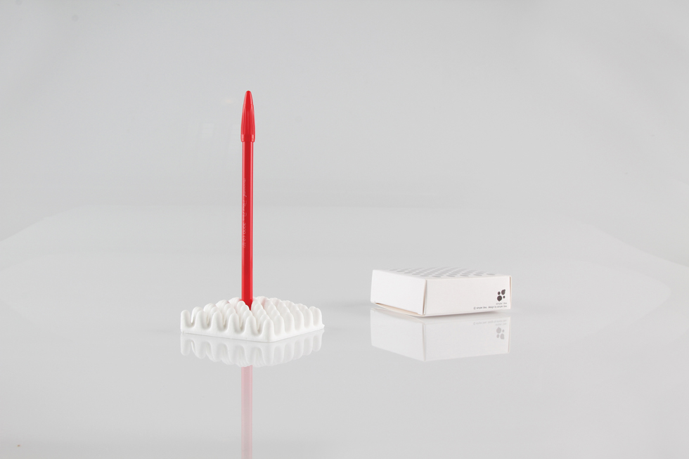 실리콘 돌기 사이에 문구용품을 담아놓을 수 있는 ‘이카루스(Icarus)’ 도 눈길이 가는 디자인이 돋보인다. 9F 그룹의 이광택 디자이너는 “이카루스를 만들게 된 계기는 딱 하나인데, 그건 바로 연필을 세워놓고 싶어서였다”라고 설명했다. “며칠 동안 이 문제에 대해 골똘히 고민하던 끝에 우연히도 목욕탕에서 그 해답을 찾게 되었죠. 목욕탕에서 올록볼록올라온 발판을 보고 번뜩 영감을 받았거든요. 그리고는 바로 적절한 소재를 적용해 이 작품을 탄생시킨 것이죠.”