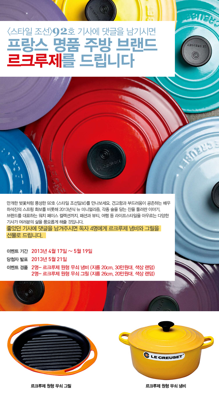 92호 기사에 댓글을 남기면 르크루제를 선물로 드립니다